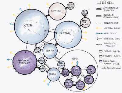 DESIGN CONCEPT: Inspired by the culture of health and wellness that has long defined Sochi, Minerals by the Sea is a center of relaxation, rejuvenation, and community. The constructivist art movement and healing powers of the historic sanatariums are reinvented for modern Sochi. The complex contrasts in Sochi serve as inspiration; the enigmatic Black Sea vs majestic Caucasus Mountains, industry vs nature, and past vs future. The power and vitality of the Olympic athlete is showcased through strong architectural lines and geometry, while the soothing palette and textures reflect the healing nature of the space. The result is a uniquely bold and inspiring spa environment designed to appeal to the Olympic athlete, and to empower spa users of all ages in their quest for vitality.